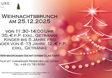 Weihnachtsbrunch am 25.12.2025 von 11:30 -14:00 Uhr 32,-€ p.P. | Kinder bis 5 Jahre frei K...