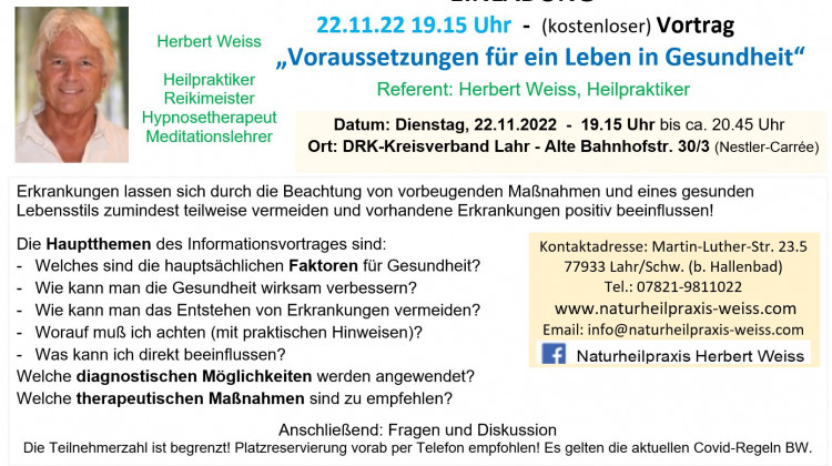Info-Vortrag (kostenlos) am 22.11.22 um 19.15 Uhr in Lahr/Schw.