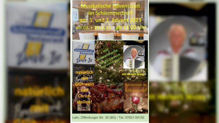 Adventslieder - Sonntagnachmittag im Schlemmertreff Lahr am 3.+10.12.23 ab 14 Uhr